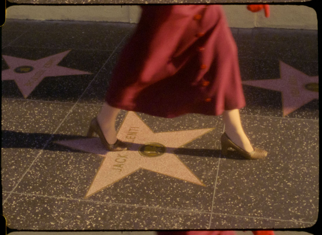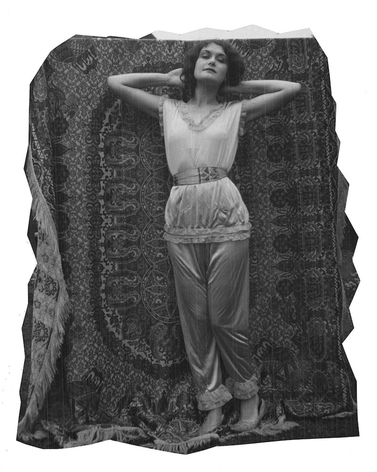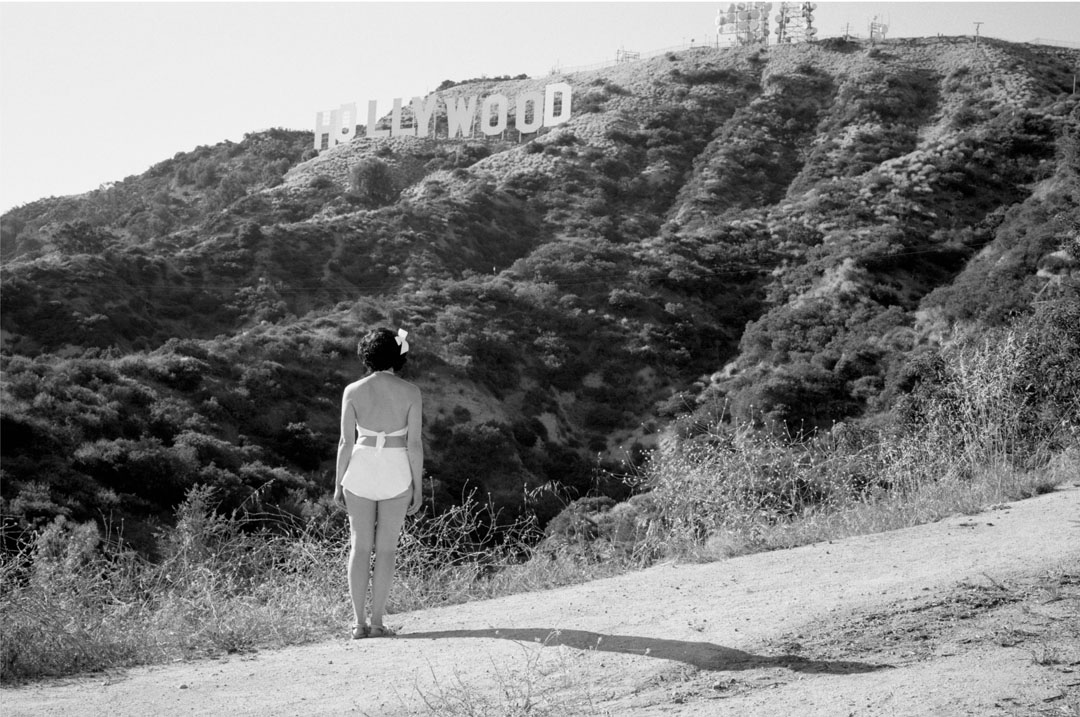 Drawing directly from the archive of my British great-aunt Nita Harvey, who was selected by Hollywood director and producer Cecil B. DeMille in a worldwide Paramount beauty contest in 1933 and shipped to Hollywood, I expose Nita’s hidden history and Hollywood experience through remaking and wearing her archival costumes to facilitate new exchanges with the historical past. These performances – rich in personal and empathetic experience – follow Nita’s 1933 archival U.S route contemporarily and are captured as photographs and 16mm film stills to echo their cinematic context.