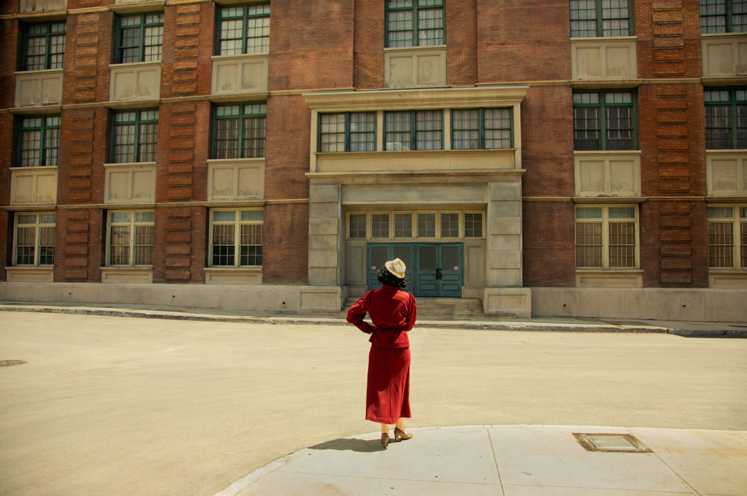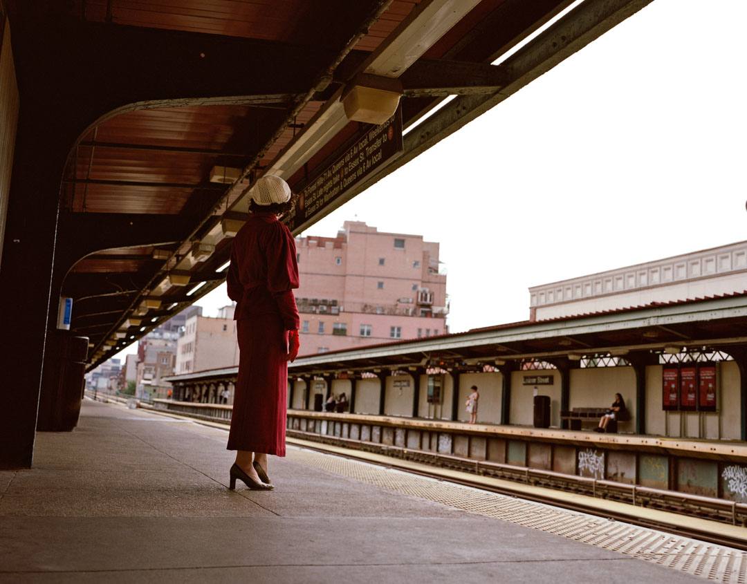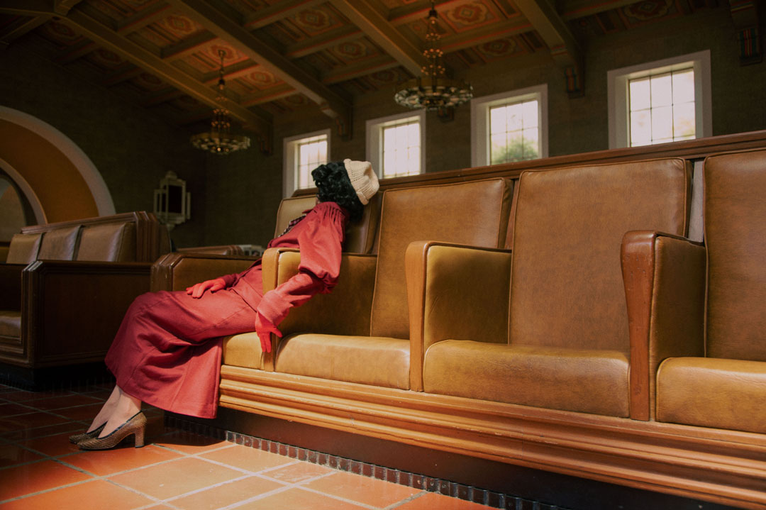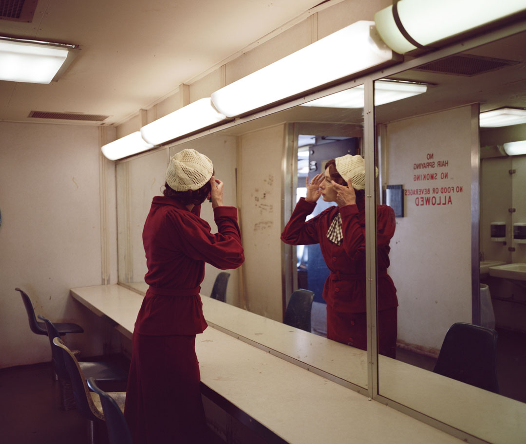 Drawing directly from the archive of my British great-aunt Nita Harvey, who was selected by Hollywood director and producer Cecil B. DeMille in a worldwide Paramount beauty contest in 1933 and shipped to Hollywood, I expose Nita’s hidden history and Hollywood experience through remaking and wearing her archival costumes to facilitate new exchanges with the historical past. These performances – rich in personal and empathetic experience – follow Nita’s 1933 archival U.S route contemporarily and are captured as photographs and 16mm film stills to echo their cinematic context.