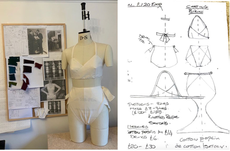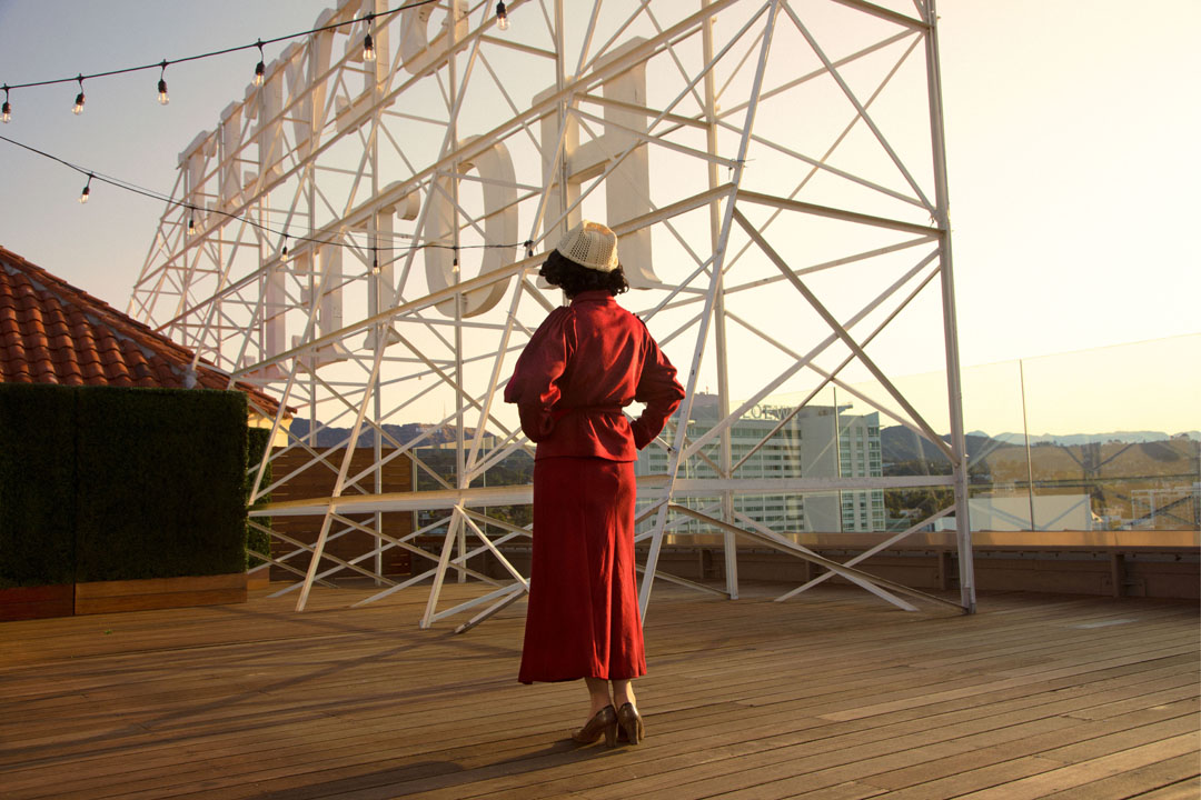 In collaboration with atelier Theresa Parker, I have created reproductions of two of Nita’s archival costumes, pattern-cut from archival photographs: a wool suit (which Nita made and wore to Hollywood) and her original Hollywood casting bikini (which Hollywood clothed her in). Wearing Nita’s remade outfits on visits to the same sites that she visited or stayed at in 1933 as an aspiring actress, I establish a dynamic between the embodied subject (Nita) in the present and the archival object (her photographs). The third costume, the Goddess Outfit, has just been finished and can be seen on my Instagram, and ready for my next performances, Nita travelled from London to New York via the ship, SS Manhattan, then later by train across America to Los Angeles (Hollywood), where she stayed at The Roosevelt Hotel and worked for Paramount studios as a newly signed ‘property’, on the Paramount Lot, filming the Pre-Code movie, Search for Beauty, (1934).